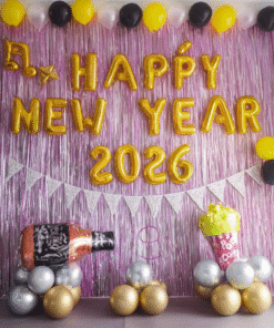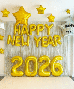 Transform your New Year celebrations with the stunning Silver Radiance New Year 2026 Decor package from Letscelebrate, guaranteed to capture attention from customers searching for glamorous and modern party themes. This elegant setup provides the perfect ambiance for New Year parties, corporate events, or a dazzling photo backdrop to ring in 2026 with unforgettable memories. The package includes four Silver Frill Curtains to create a sparkling, textured backdrop, beautifully centered by a glamorous Golden ‘Happy NY 2026’ Foil Balloon (16 inch). To complete this chic and celestial look, the décor features six Silver 4D Star Foil Balloons, four trendy Disco Foil Balloons for a fun, retro vibe, and four sleek Silver Orbz Foil Balloons, all crafted from high-quality materials to ensure your celebration has maximum style and glamour.
