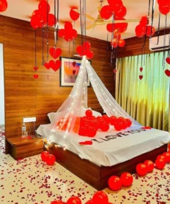 ✅ “LOVE” boxes filled with rosegold metallic and white balloons and one LED light.