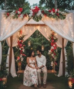 ✅ Seven feet canopy decorated with eight white nets, red/pink artificial strings, three LED lights and white dream catcher to give a boho touch.