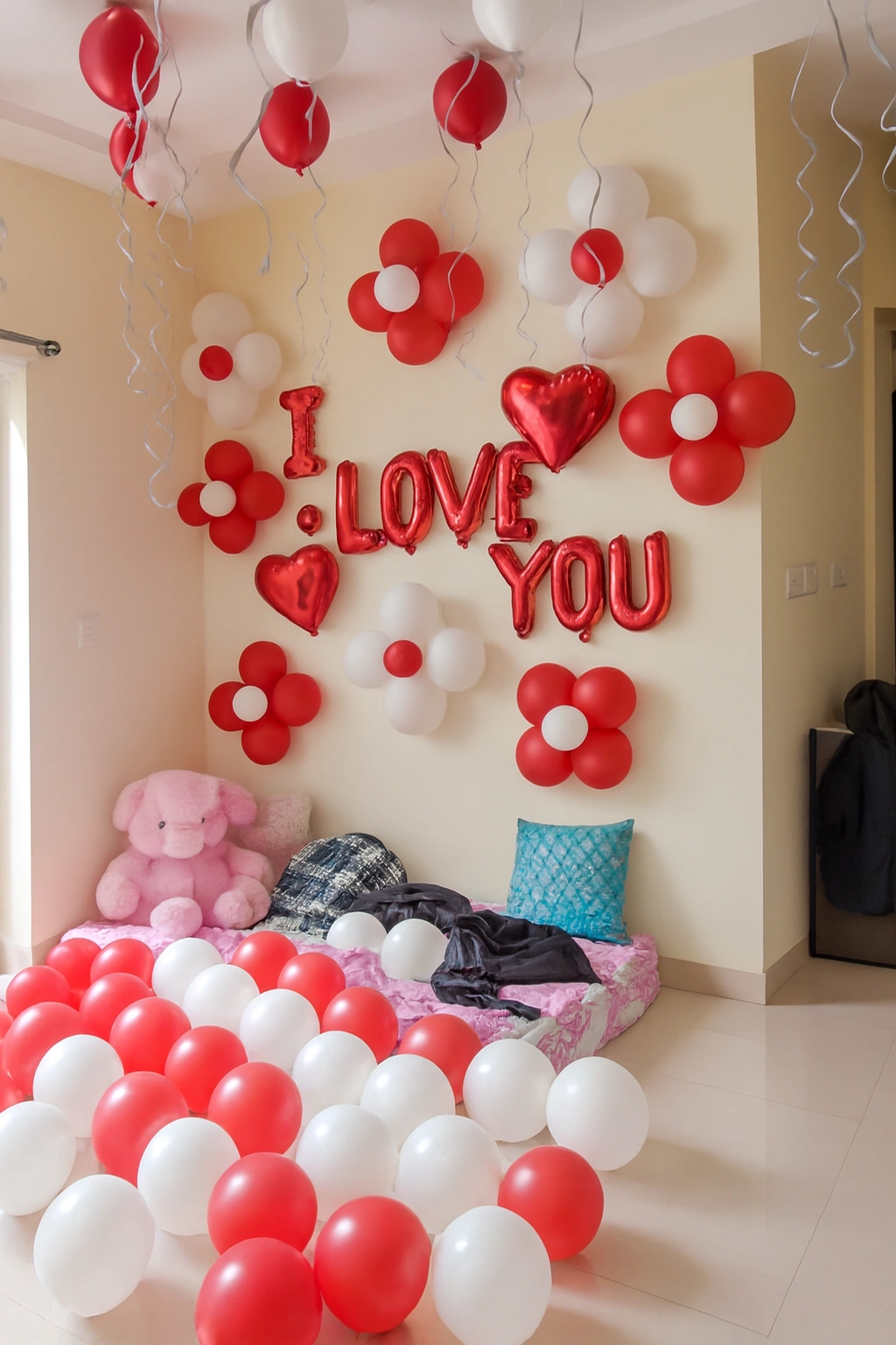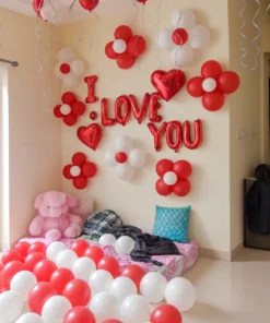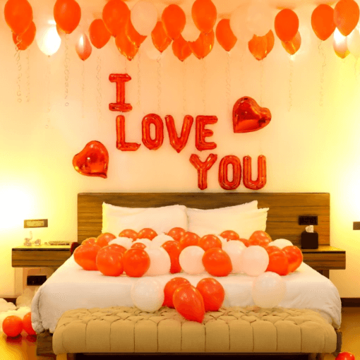 There is nothing quite like the feeling of walking into a room transformed by passion, and Letscelebrate is here to ensure that moment is absolutely perfect for you and your partner. Our Gorgeous Balloon Room Decoration is a signature experience designed to turn your bedroom into an immersive sanctuary of love, featuring striking “I Love You” red alphabet foil balloons as a bold focal point. To create a truly mesmerizing aura, Letscelebrate fills your space with elegant red heart-shaped accents and a canopy of crimson balloons drifting from the ceiling and cascading across the bed. Whether you are celebrating a milestone anniversary or a heartfelt proposal, Letscelebrate handles every detail of this grand visual surprise so you can focus on the words that matter most.