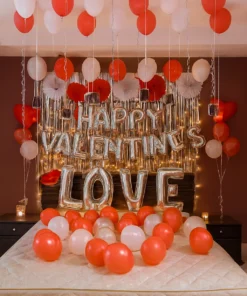 Turning your dream date into a breathtaking reality is exactly what Letscelebrate does best, especially when it comes to marking your most significant milestones. Our Rose Gold Love Wall Decor is an exquisite arrangement designed to bathe your room in a warm, sophisticated glow, featuring a stunning cursive “love” foil centerpiece and massive thirty-inch “XO” silver letter balloons. To ensure a truly immersive experience, Letscelebrate meticulously styles your space with over one hundred rose gold and pink pastel balloons, accented by professional fairy lights that dance across the floor-scattered balloons and shimmering silver heart foils. Whether you are celebrating a birthday or a milestone anniversary, Letscelebrate provides a bright, high-fashion atmosphere that ensures your evening is as unforgettable as the love you share.