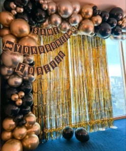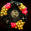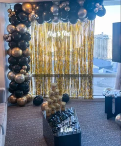 ✅ Arch of one hundred and seventy-five balloons of colour fifty black latex, twenty-five black polka dot, fifty silver chrome and fifty golden chrome balloons.