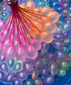 ✅ One bubble balloon filled with five non metallic balloons of color light green, dark green, pink, purple and yellow.