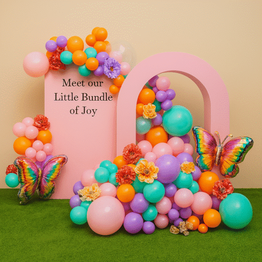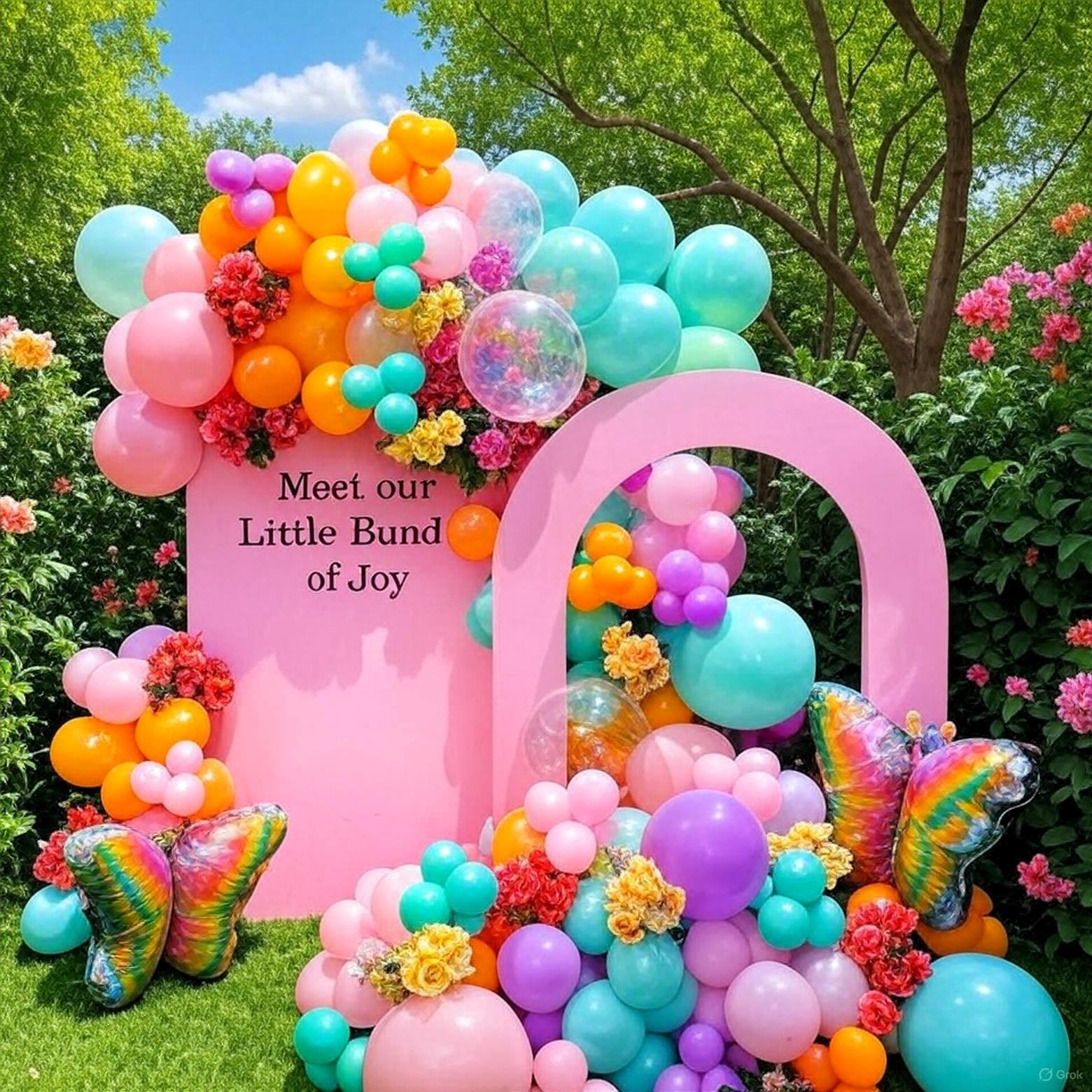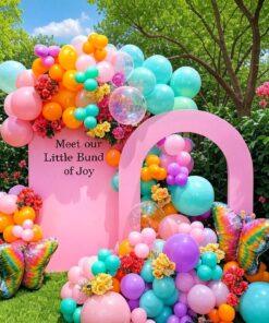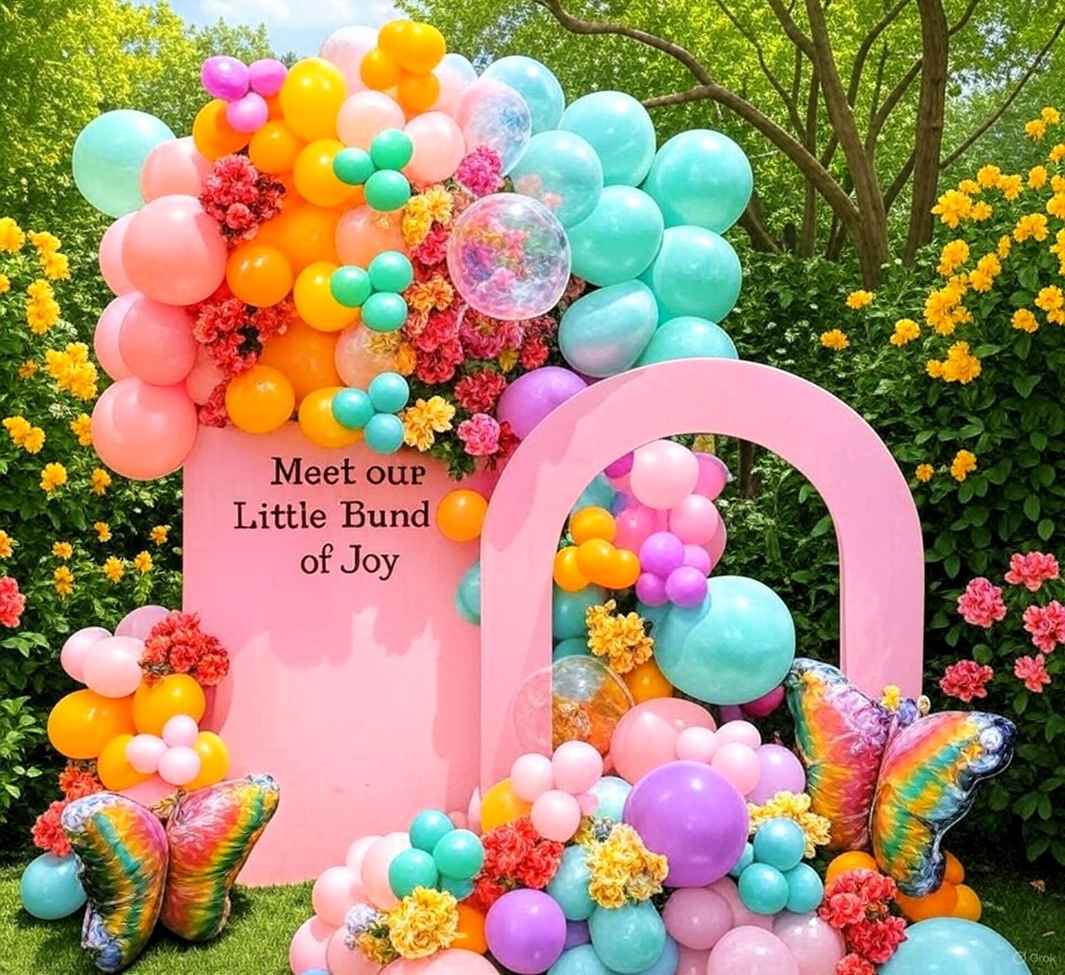 Welcome your little one into a whimsical haven with Letscelebrate’s enchanting Pastel Garden Welcome Baby Decorations, meticulously curated for a magical homecoming celebration. Our delightful decor features charming Sun board Cutouts, graceful Butterfly Foil Balloons, and a vibrant arch of balloons in soothing pastel hues of green, orange, purple, and pink, adorned with beautiful flower bunches. This captivating arrangement creates a calm, serene atmosphere, nurturing your baby’s senses while infusing the room with joy and wonder. Fully customizable with options like LED lights and welcome boards, Letscelebrate crafts every detail with love, ensuring an unforgettable, truly unique celebration of your baby’s arrival!