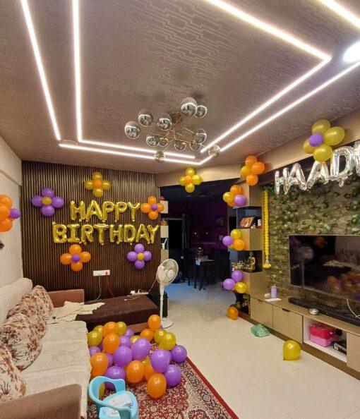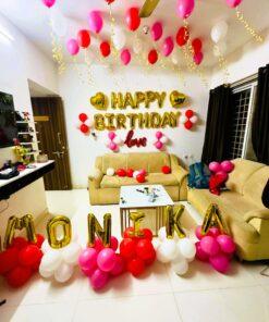 Create an amusing, unforgettable moment for your loved ones with Letscelebrate’s exquisite Birthday Balloon Decoration! Our signature decor tastefully transforms any room with 100 vibrant latex balloons and elegant ribbons, perfectly complemented by “Happy Birthday” letter foil balloons. This specially curated package ensures a joyful celebration vibe for any birthday event or party, ideal for surprising someone special right in their home or bedroom. With Letscelebrate, you can flatter them with a beautifully decorated space that speaks volumes of your affection!