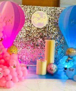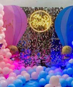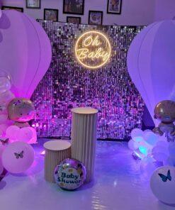 Get ready to be swept away by the cuteness of LetsCelebrate’s dreamy Sky Baby Shower Decoration theme! We’ve meticulously curated every element to create a truly magical experience for you and your loved ones. Picture a breathtaking blend of perfectly matched balloons, a mesmerizing sequence panel in silver, and the gentle glow of an “Oh Baby” neon light, all harmoniously arranged with transparent and charming pink and blue bubble balloons. With the addition of soft lighting, this aesthetic will leave you in awe and create unforgettable memories as you celebrate your little one’s arrival. Our team handles every detail, ensuring a seamless and hassle-free celebration at your chosen venue.