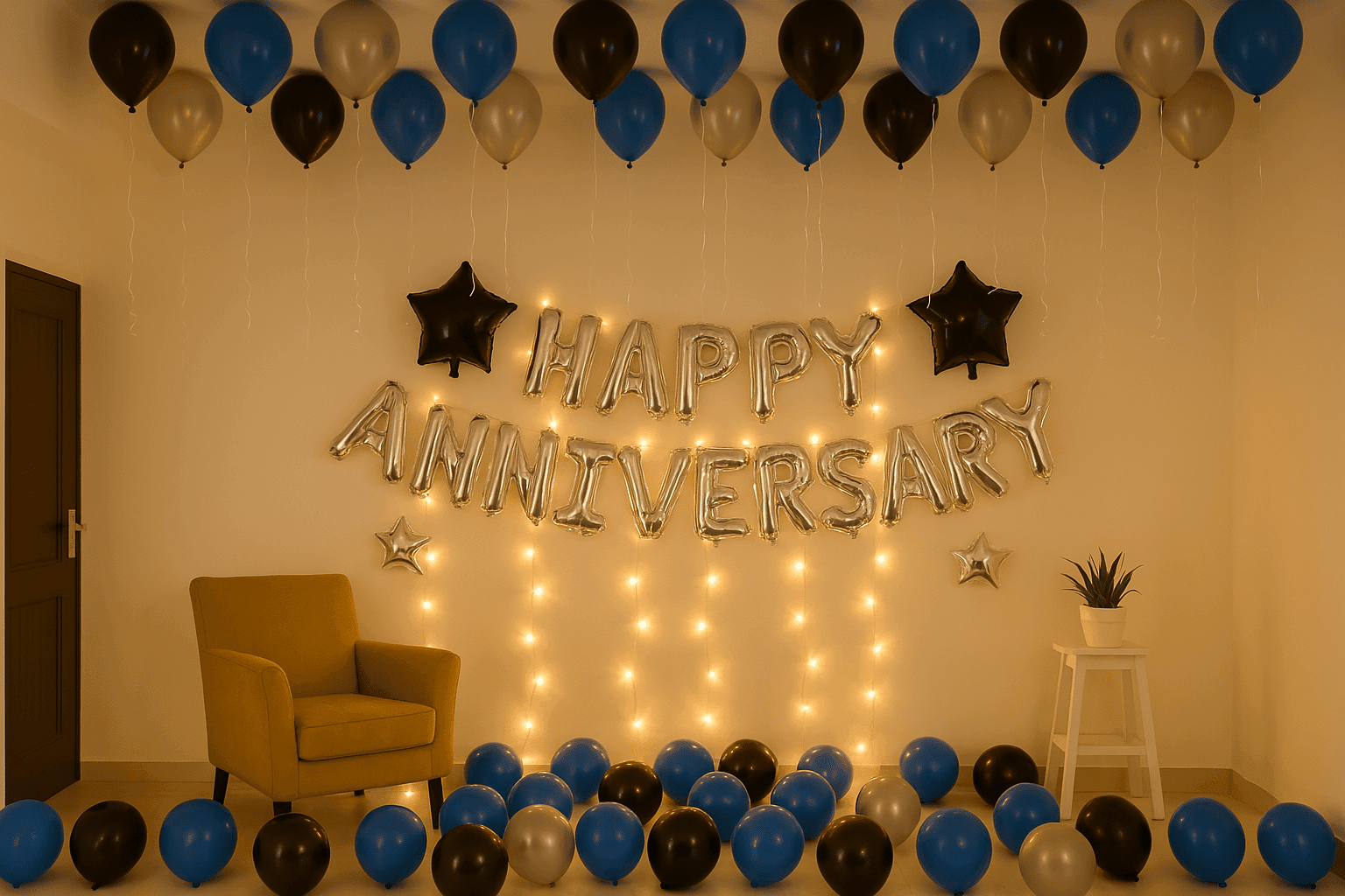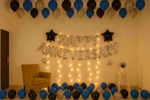Elevate Anniversaries – Blue & Silver Decor