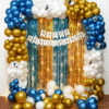 ✅ Fifty black latex balloons, fifty silver metallic balloons, and fifty dark blue metallic balloons.