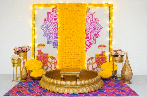 Letscelebrate presents the perfect Haldi decoration idea with our unique Elephant Theme Haldi Decor. This visually stunning setup is designed to create a joyful and culturally rich atmosphere for your special day. Searching for unique wedding decor or traditional Haldi ceremony ideas? Our theme, with its vibrant garlands, elegant brass lamps, and a captivating elephant backdrop, offers a flawless blend of tradition and modern style. It’s the perfect way to add a touch of grandeur and elegance to your celebration. With Letscelebrate, you can ensure your Haldi ceremony is not only fun and memorable but also a feast for the eyes, leaving a lasting impression on all your guests.