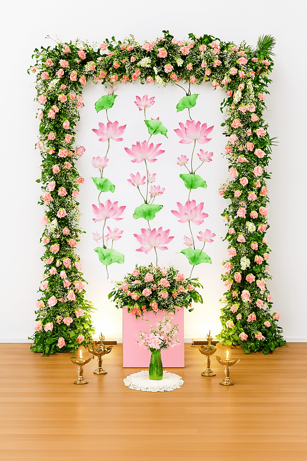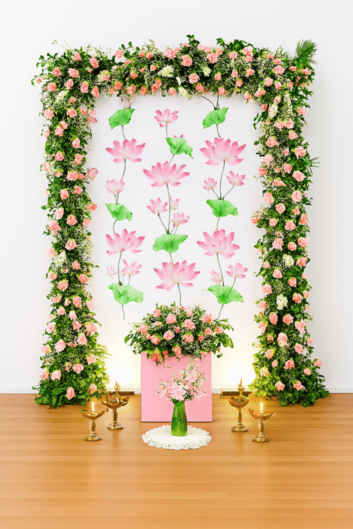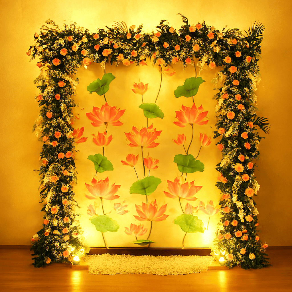 Classic Elegance: Floral Pooja Backdrop Diwali Decor