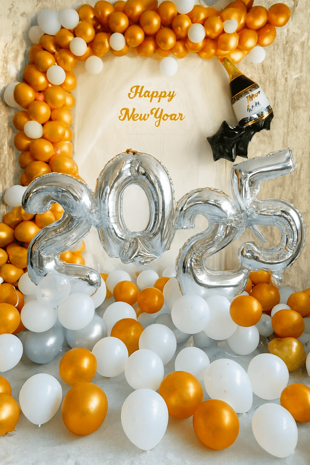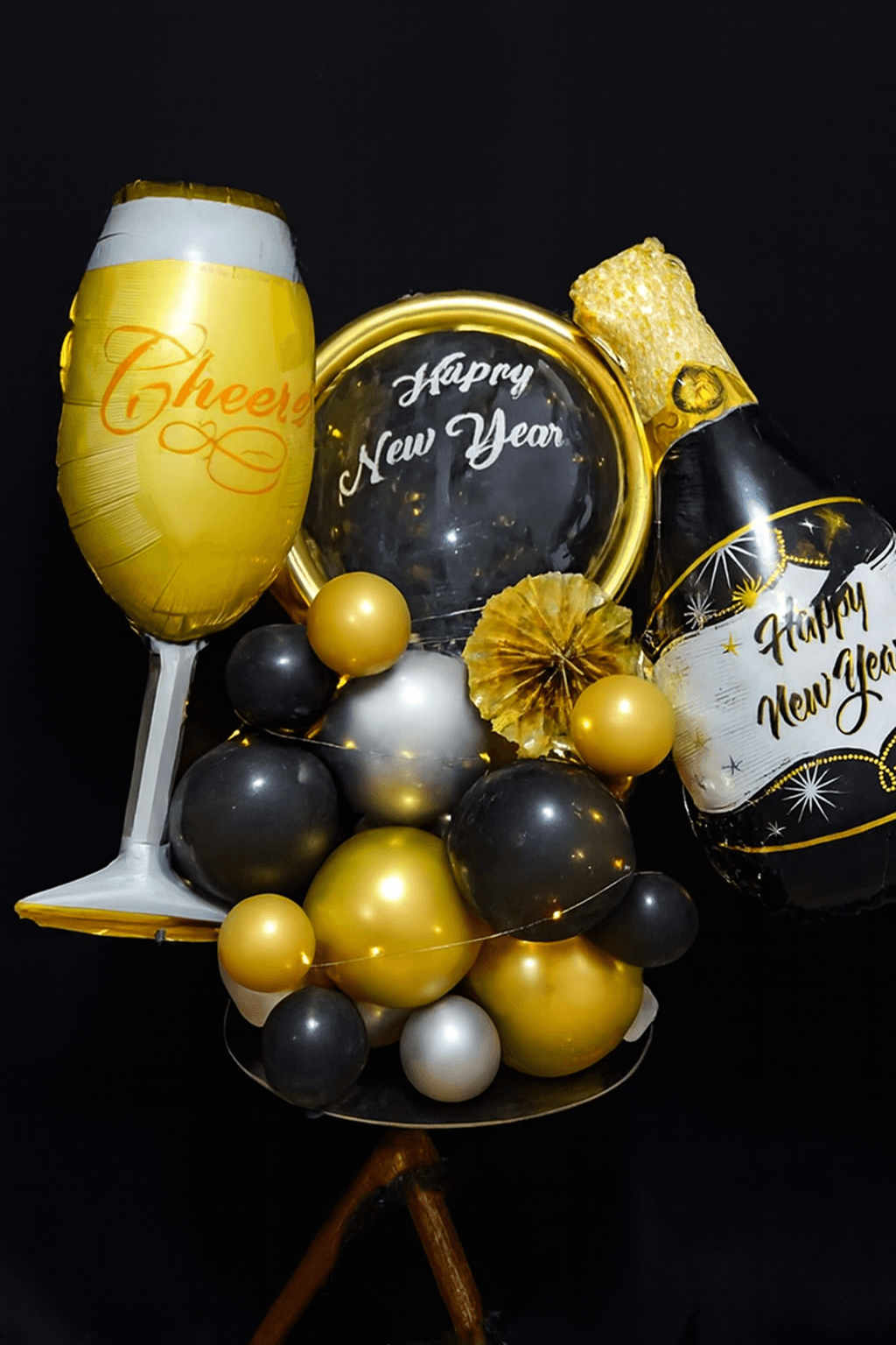 ✅ One Bubble balloon with Happy New Year Wish with white vinyl.