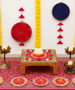 ❌ Floor decoration – carpet, chowki, candles, candle stand and rangolis.