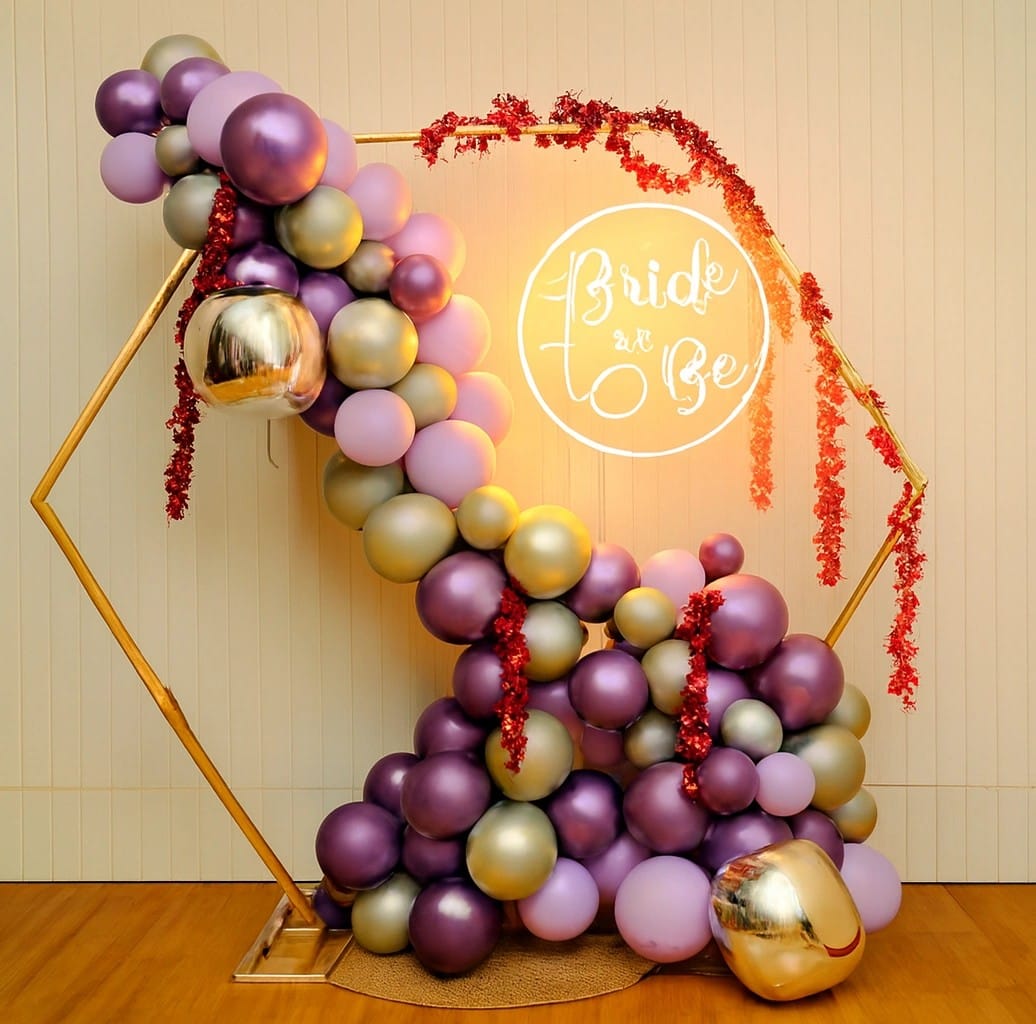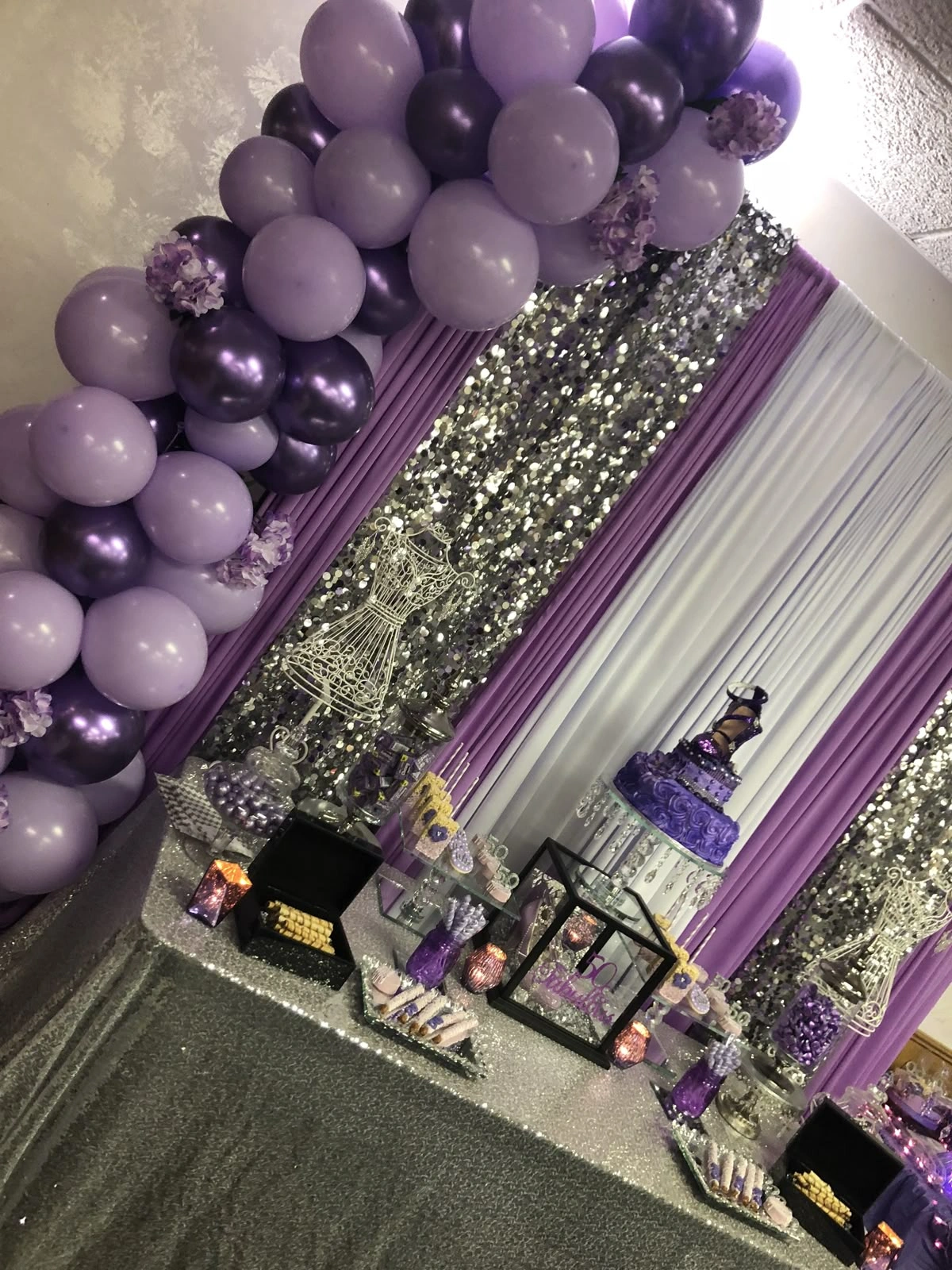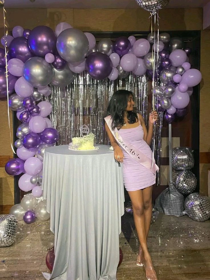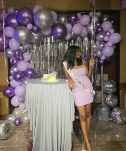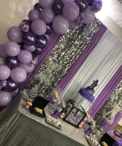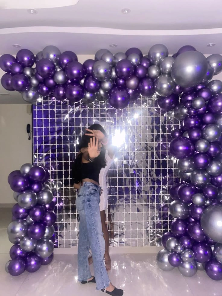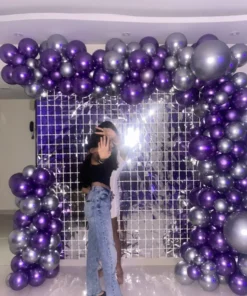 ✅ Arch of one hundred ten balloons of colour forty purple chrome, forty silver chrome and thirty purple pastel balloons.