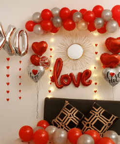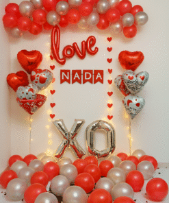 ✅ Two bunches of eight heart shape foil balloons – two Silver, two Red, two White I love you & two Red hugs and kisses.