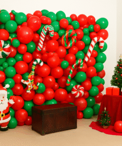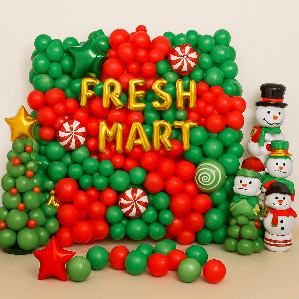 Hear the ringing of bells and enjoy the cheers of Christmas with this fun and festive Christmas Theme Balloon Decoration from Letscelebrate, a perfect addition to make your celebration brighter and merrier for both adults and kids! Whether you’re planning an office party, a school event, or a gathering at home, this Christmas Theme Balloon Backdrop offers the perfect combination of “just enough” charm that you simply can’t say no to. This perfectly curated decor features a wall-pasted backdrop made from Red Latex balloons accented with Dark Green Latex, Light Green Latex, Green Chrome, and Red Polka Dot Balloons. Adding to the festive scene, the backdrop is adorned with an array of foil balloons, including a Candy Cane, an 18″ Round Red Candy, a Christmas Tree, a Santa Claus, a Snowman, and a Deer Foil Balloon, plus free-floating balloons for the floor. This charming Christmas Party Backdrop Decoration Idea is designed to enhance the aura and look of your place anywhere in Delhi NCR. You can easily purchase this decoration online, ensuring you give your family and friends the ultimate Christmas Vibes.