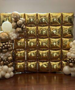✅ A balloon stand made with ten metallic grey balloons and ten golden balloons, with a foil balloon on top with ‘cheers’ written on it (cheer glass will be used as per availability).