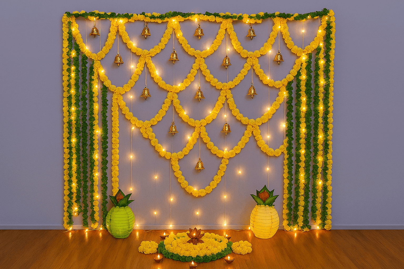 Golden Bells Haldi Decor