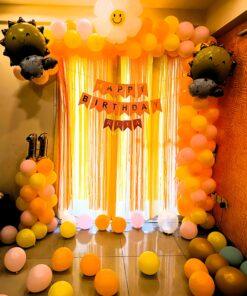 Embrace the carefree happiness of summer and sunshine with Letscelebrate’s delightful Pastel Birthday Arrangement! This charming decor features a fresh pink, peach, and yellow soft balloon arch, while golden sun foil balloons and sunflower details introduce warmth and undeniable cuteness. A shimmering foil curtain glimmers behind a cheerful “Happy Birthday” bunting, creating the perfect celebration spot. Whether for an indoor event or a small gathering, Letscelebrate offers this light, fun, and sophisticated design, easily customizable with your choice of colors and themes, ensuring a heartwarming and memorable birthday!