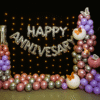 Ready for a grand anniversary celebration brimming with opulence and sophistication? Letscelebrate invites you to transform your home or outdoor venue into a dazzling spectacle with our exquisite Gold Skyline Decorations. Imagine a breathtaking scene where a shimmery frill of gold and blue accents forms a captivating skyline backdrop, instantly enchanting your guests with its warm, inviting glow. This meticulously curated decor features an intricate blend of golden chrome, blue chrome, and white balloons, alongside whimsical butterfly cutouts and a festive “Happy Anniversary” bunting. Every element, from the detailed gold accents to the elegant frill drapes, is designed to create a visually stunning ambiance for a truly unforgettable anniversary celebration.