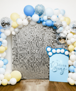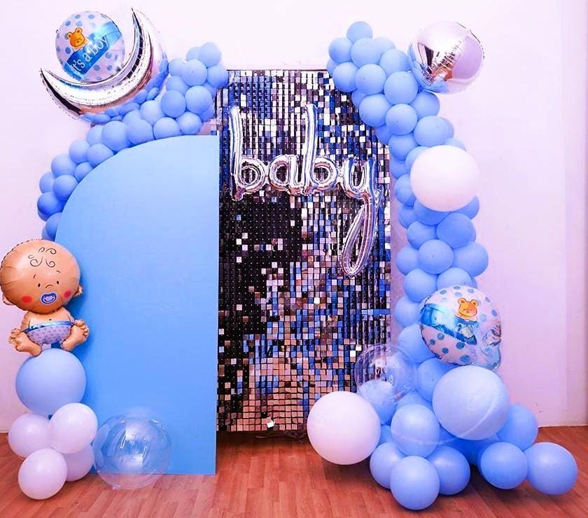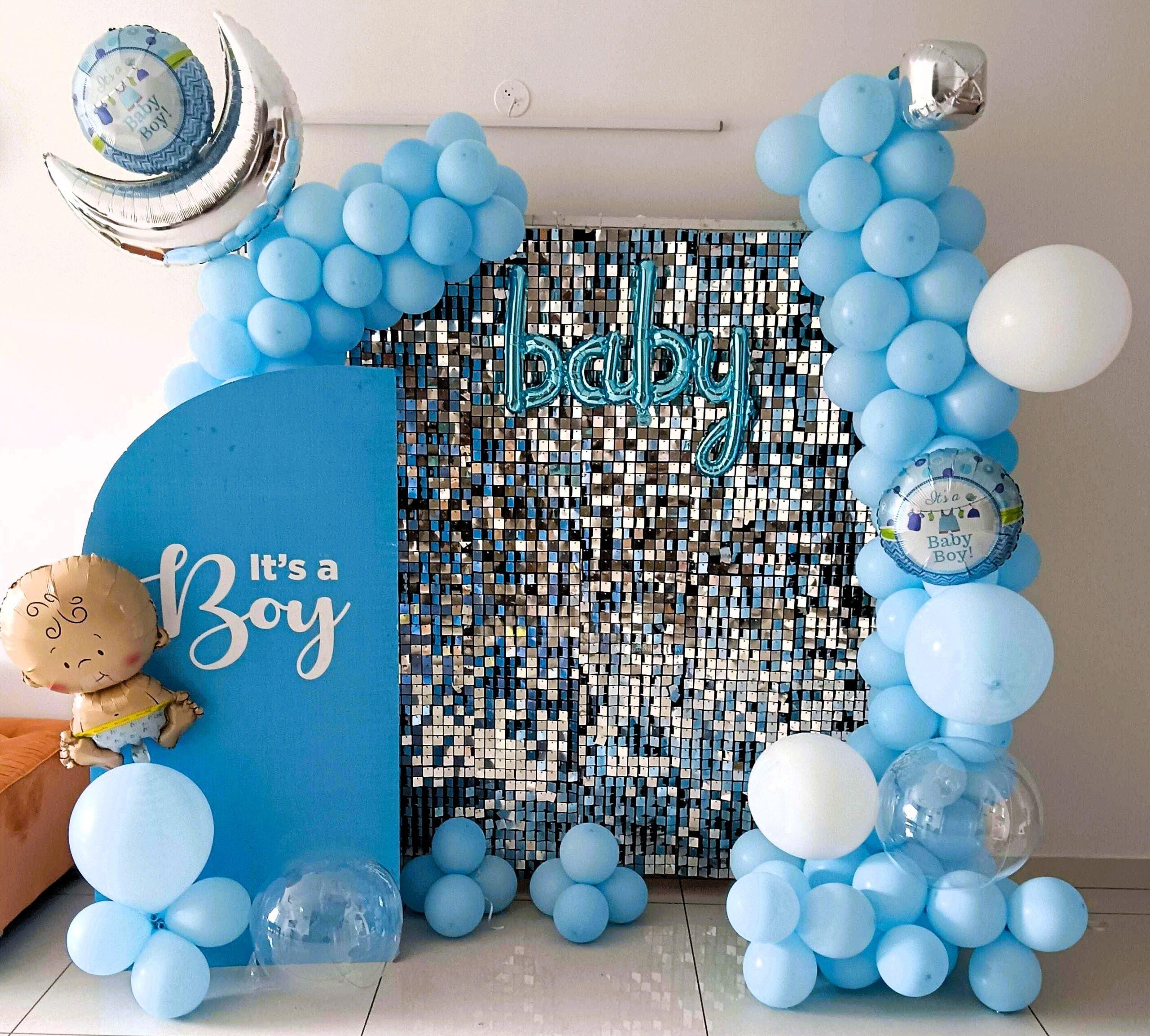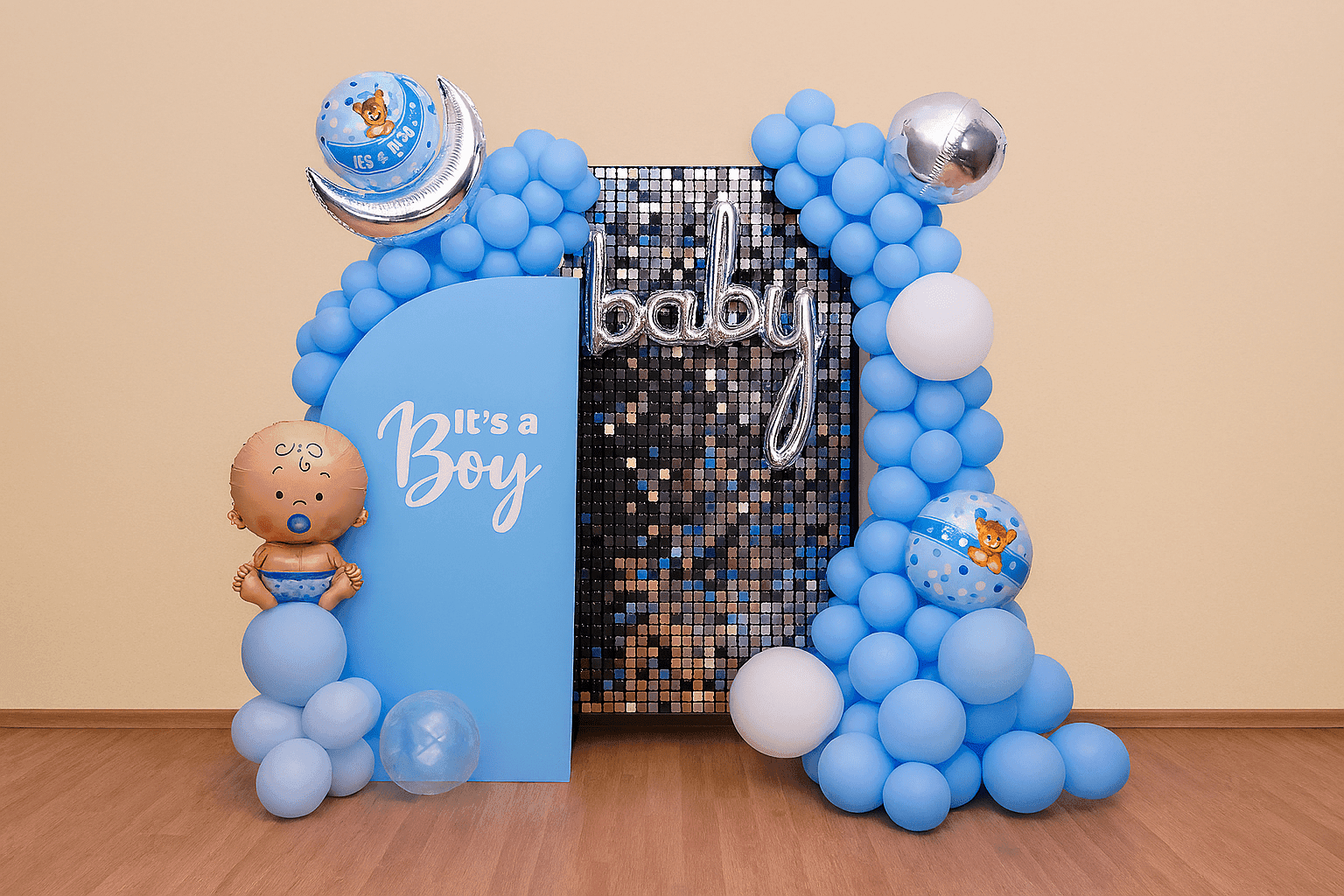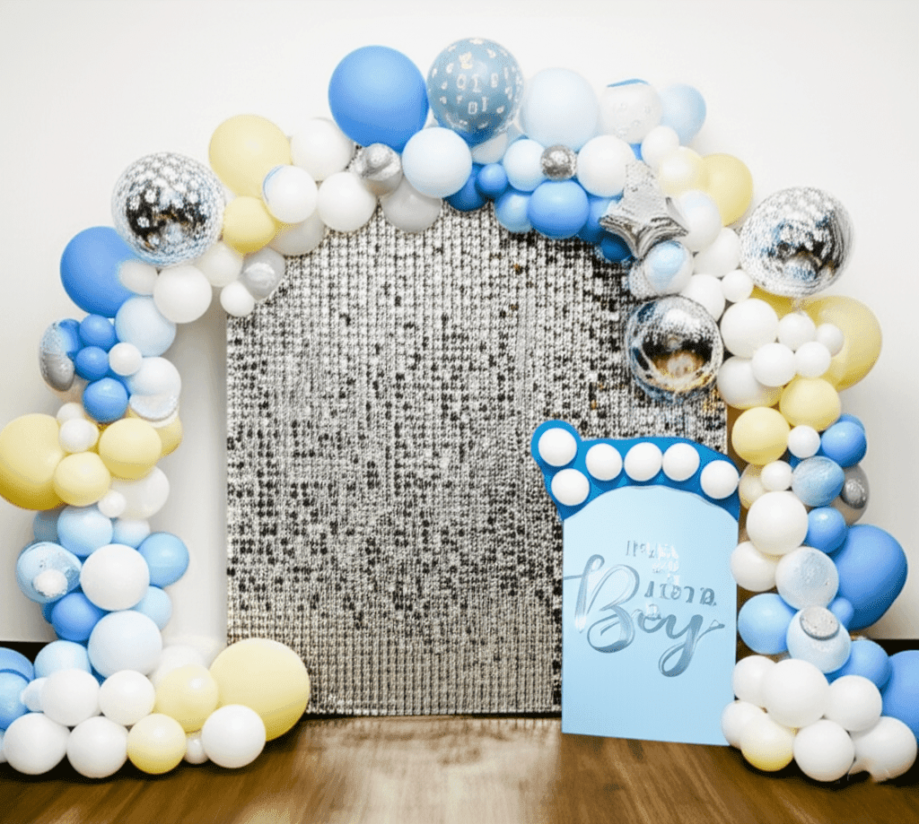 ✅ One small arch of fifty blue pastel balloons to decorate the blue panel.