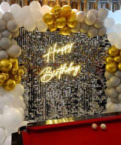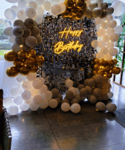 Planning a surprise birthday for a loved one? Let’s Celebrate helps you craft unforgettable memories with our stunning Grey and Golden Theme Silver Sequin Birthday Decor. This luxurious and sophisticated setup blends soft grey hues with rich gold tones, creating an elegant, timeless, and modern ambiance. The addition of shimmering silver sequins adds a touch of glamour and sparkle, ensuring your celebration truly stands out. Elevate your party with this striking decor that’s perfect for partners, parents, friends, or siblings.