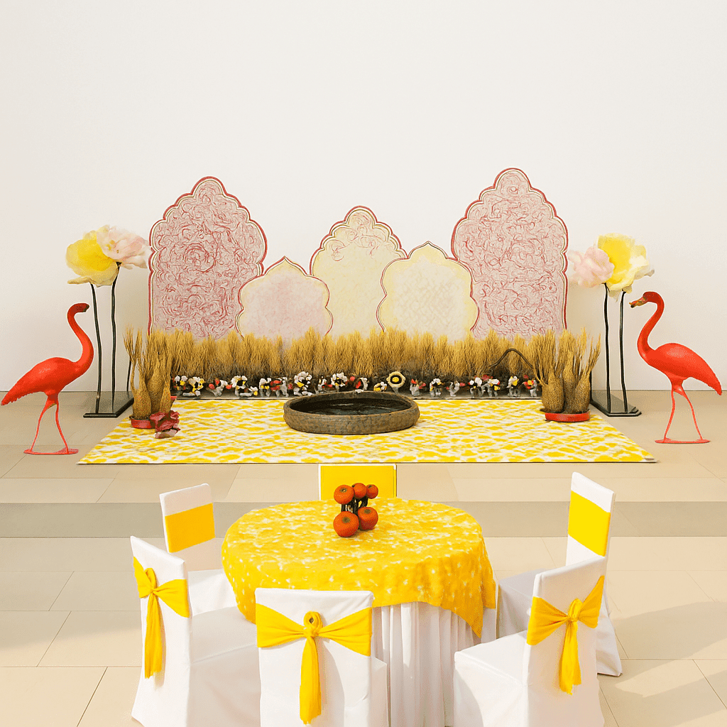 Celebrate in Style with Our Pink Flamingo Haldi & Mehndi Decor