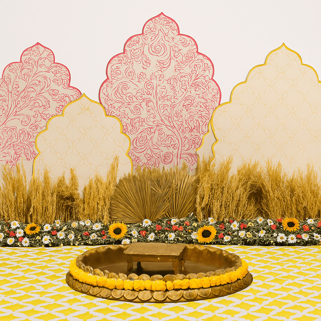 Looking for a unique way to celebrate your Haldi and Mehndi? Letscelebrate offers a stunning Pink Flamingo decor package that brings elegance and fun to your special day. Our setup, featuring pastel backdrops, graceful pampas grass, and charming flamingo statues, is perfect for creating a memorable and sophisticated atmosphere. If you’re searching for Haldi Mehndi decor ideas or a unique party rental, our Pink Flamingo theme is a perfect choice. This decor not only elevates the visual appeal of your celebration but also provides a chic backdrop for all your photos, ensuring your event stands out. Choose Let’s Celebrate to make your dream event a beautiful reality.