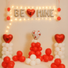 ✅ Twelve red heart-shaped foil balloons stuck on the ceiling.