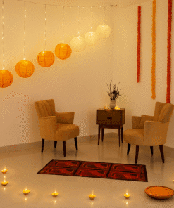 ✅ Ten Artificial Garlands of five ft (orange and yellow).