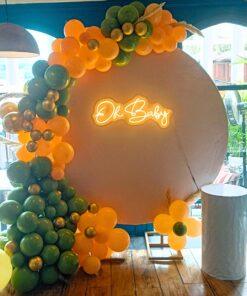 Planning a surprise baby shower? Look no further than LetsCelebrate’s exclusive Peachy Retreat decorations – so enchanting and adorable, the mommy-to-be will absolutely fall in love! We’ve poured beauty into every detail, ensuring the moment parents walk in, they’ll be astonished by its charm. This dreamy setup features a ring stand adorned with pastel peach flex and a captivating balloon arch incorporating retro peach, vintage olive green, and golden chrome hues. With endless customization options like neon lights and more free-flowing balloons, LetsCelebrate promises to amplify your joy and transform any venue into a dreamlike setting radiating love, happiness, and anticipation.