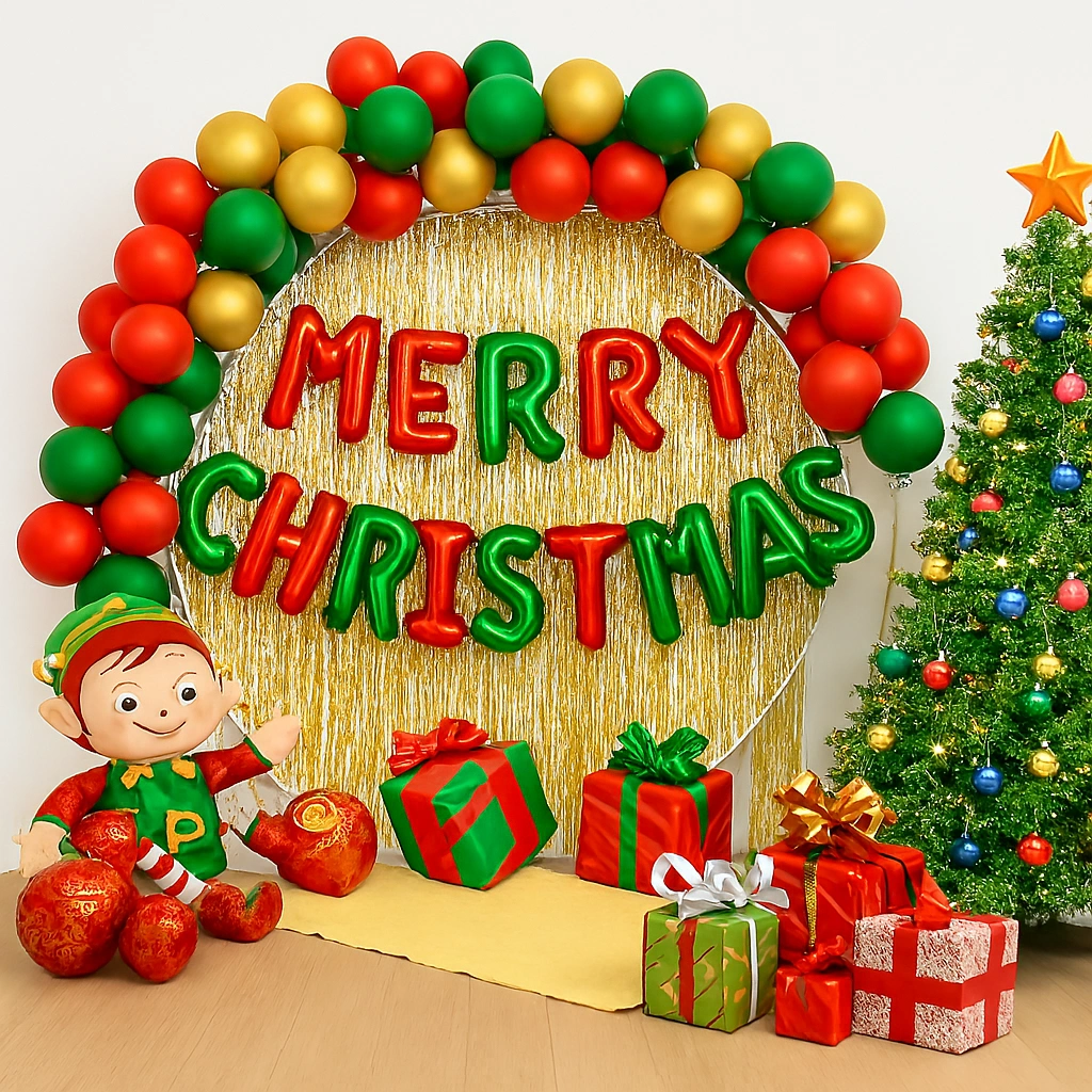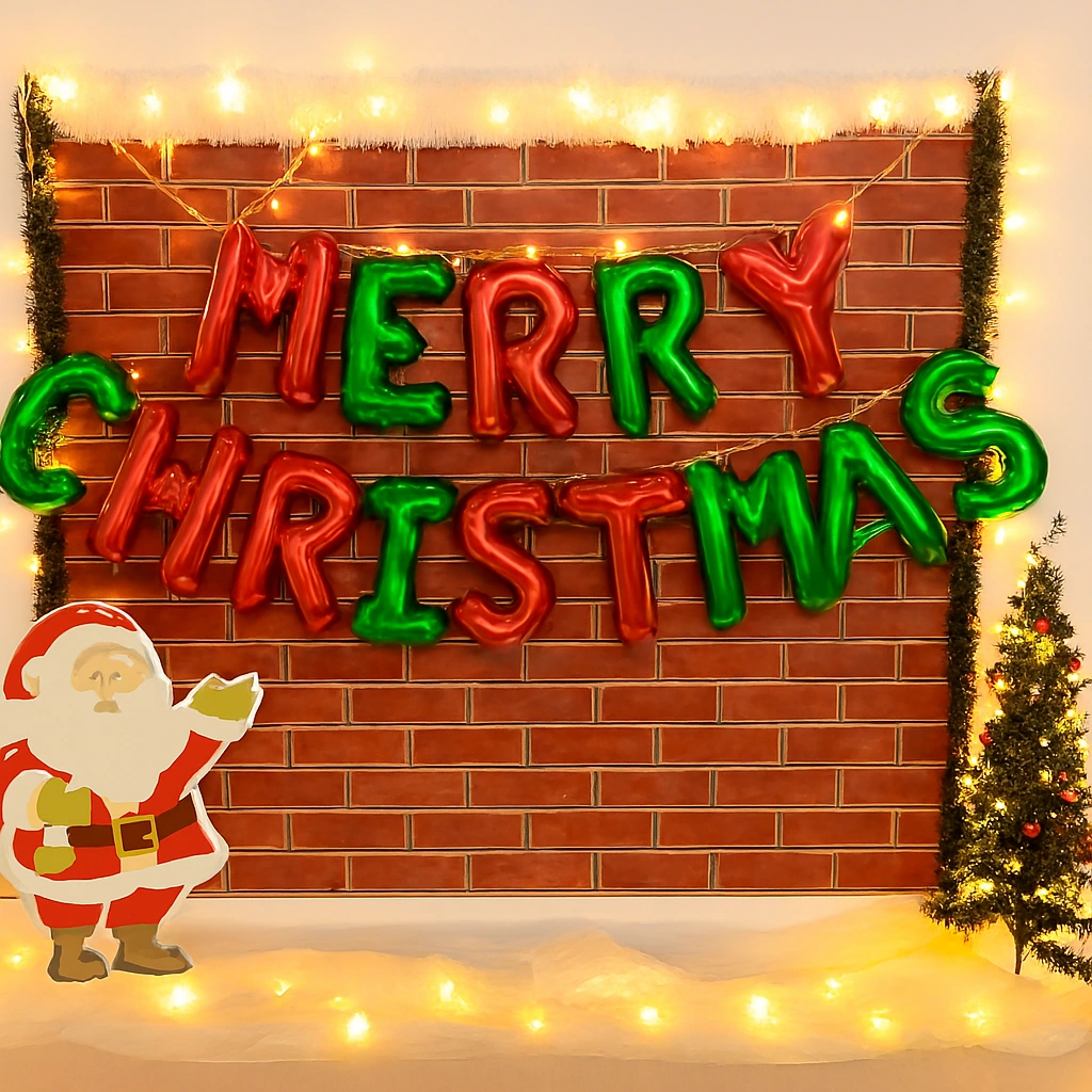 ✅ One Set of Red and Green Merry Christmas Foil Balloons.