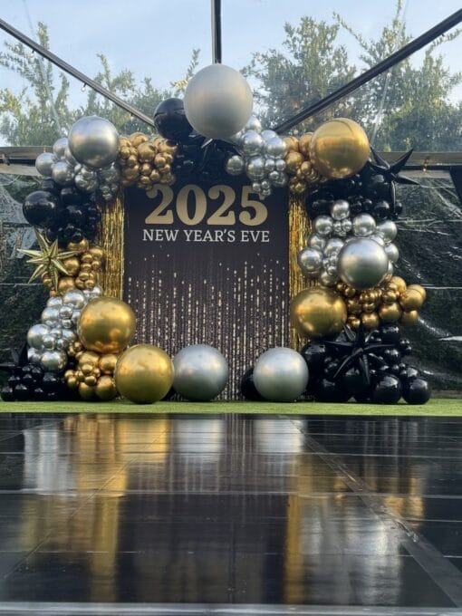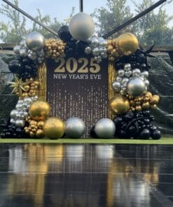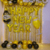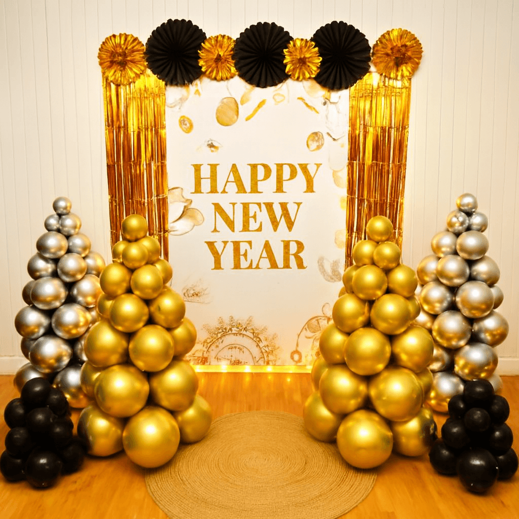 This New Year’s Eve, you can truly surprise your guests and create an exciting, memorable space with the Happy New Year Backdrop from Letscelebrate. Not only will this stunning backdrop immediately catch everyone’s attention as they enter the room, but it will also effectively set the perfect tone for an amazing evening of celebration, attracting customers searching for high-impact NYE 2026 decorations. Crafted using high-quality materials to last throughout the night, the setup includes one large Happy New Year Flex, two glamorous Golden frill curtains, four Golden Rosettes, and three Black Rosettes. The grand statement is completed with three sets of balloon pillars: two Silver chrome (70 balloons), two Golden chrome (60 balloons), and two Black chrome (40 balloons), alongside two dazzling Pixel Led lights, ensuring this Letscelebrate backdrop instantly transforms your room into the perfect place for a wonderful 2026 celebration.
