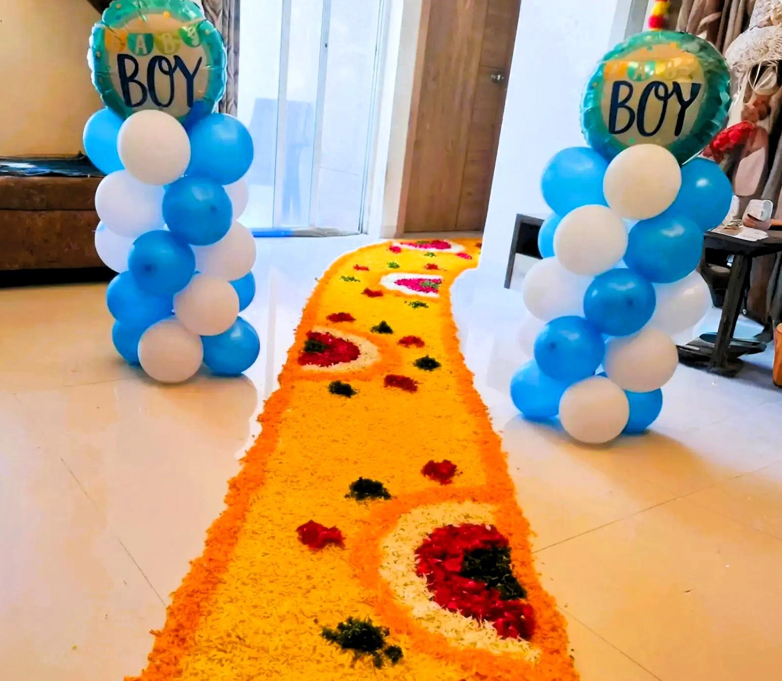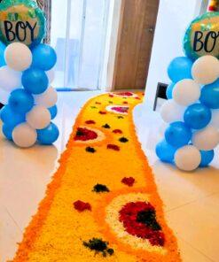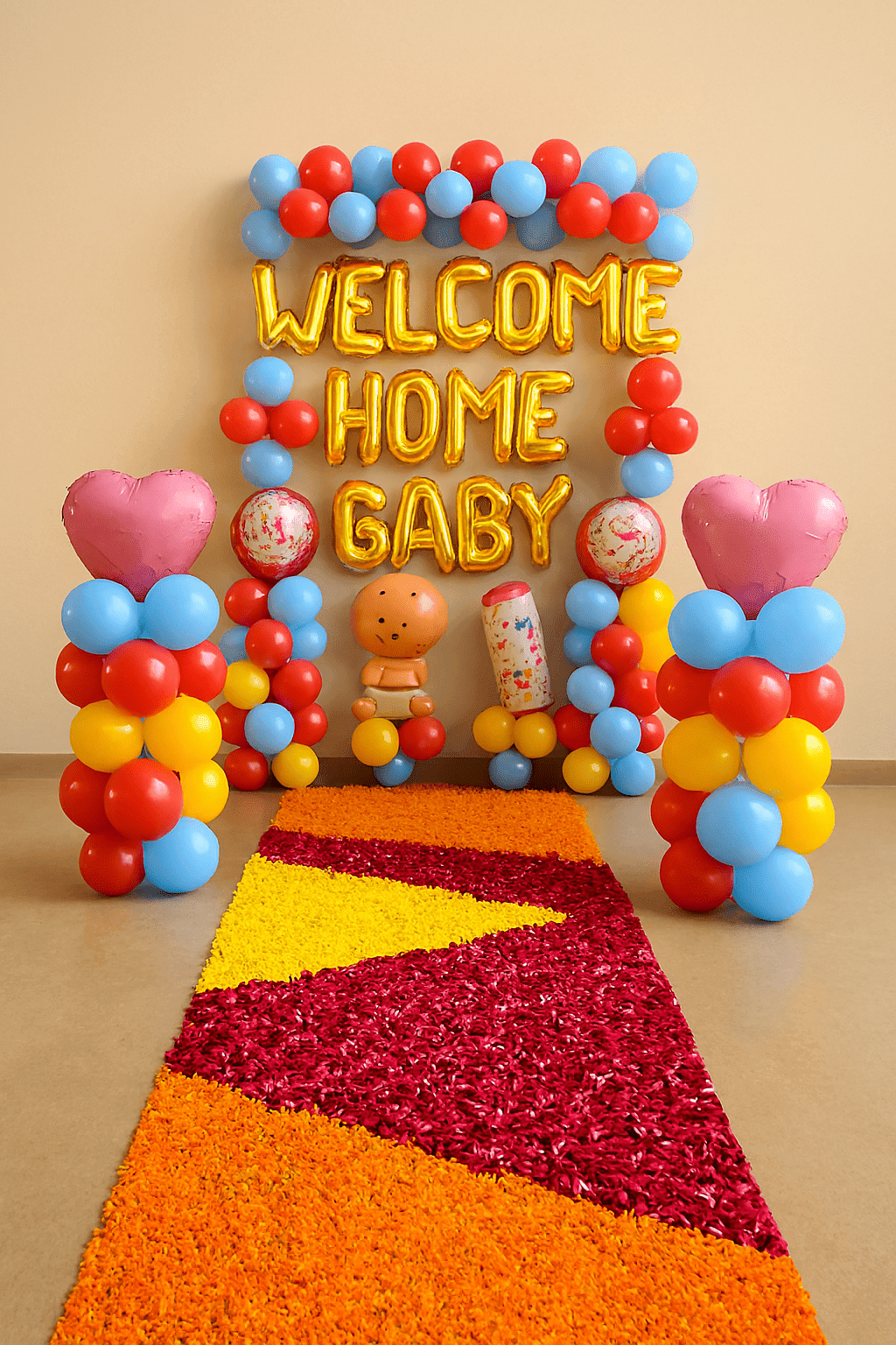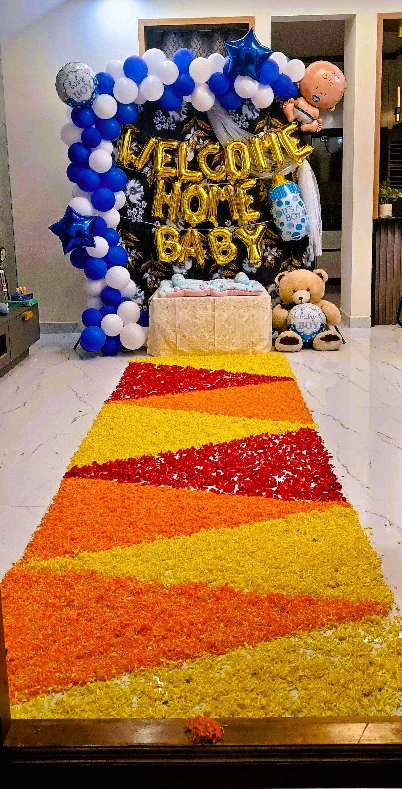 Welcome your bundle of joy in style with Letscelebrate’s premium Welcome Home Baby decoration setup. Featuring 150 vibrant balloons in shades of blue, red, and gold—along with a charming baby face balloon and shiny golden foil letters—this gender-neutral décor brings warmth, joy, and unforgettable charm to your space. A pathway lined with colorful petals enhances the celebration, creating the perfect backdrop for photos and memories. Designed to delight your family and guests, this multi-colored setup transforms your home into a lively, picture-perfect haven. Whether you’re bringing home a baby boy or girl, Letscelebrate ensures every detail adds magic to your special moment.