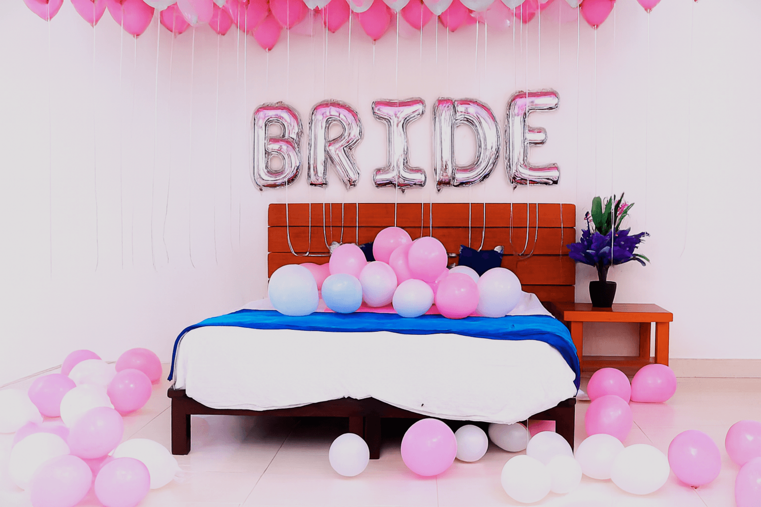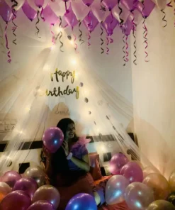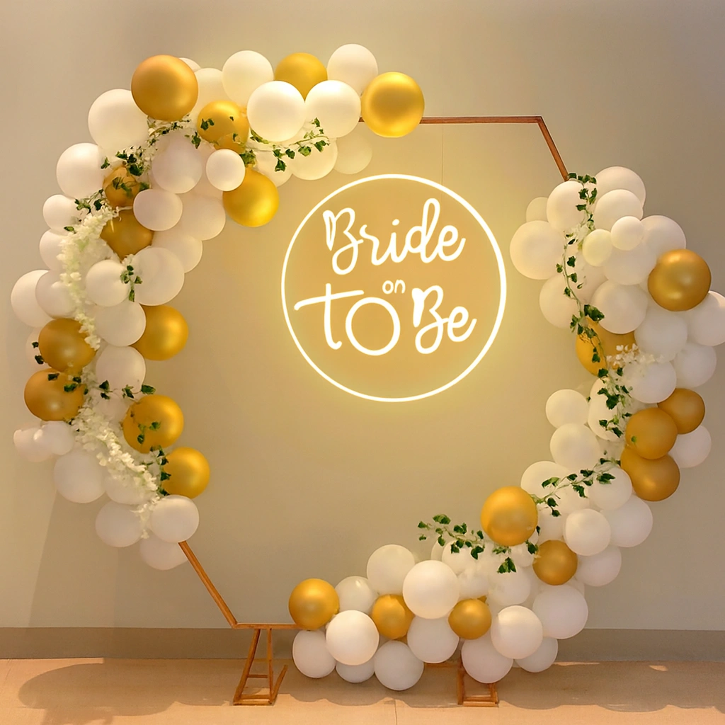 Every bride-to-be deserves a celebration that feels as extraordinary as her journey, and Letscelebrate provides the perfect balance of elegance and high-energy fun with our signature bachelorette decor. Our curated package transforms any space into a glitzy sanctuary using a stunning palette of white and blue pastel balloons, including delicate clusters floating from the ceiling with elegant ribbons. The centerpiece of the experience is a grand “Bride-to-Be” foil balloon backdrop, designed by Letscelebrate to serve as the ultimate high-fashion photo op for you and your crew. Whether you are toasted with fizz or dancing the night away, Letscelebrate ensures the ambiance is set for a night of quirky, stylish, and unforgettable memories.