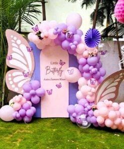 Express your happiness and celebrate the arrival of your precious baby with Letscelebrate’s exclusive Whimsical Flutter Welcome Baby Decorations. This stunning package adds a touch of magic and beauty to your joyous festivities, whether you host a party at home or outdoors. Our carefully crafted decor features charming sun board cutouts adorned with graceful butterfly cutouts and a delightful combination of purple and pink balloons. Cascading bunches of balloons create a magical, enchanting atmosphere that will mesmerize your guests. The harmonious blend of purple and pink hues sets the perfect tone for welcoming your little bundle of joy, making this celebration truly unforgettable.