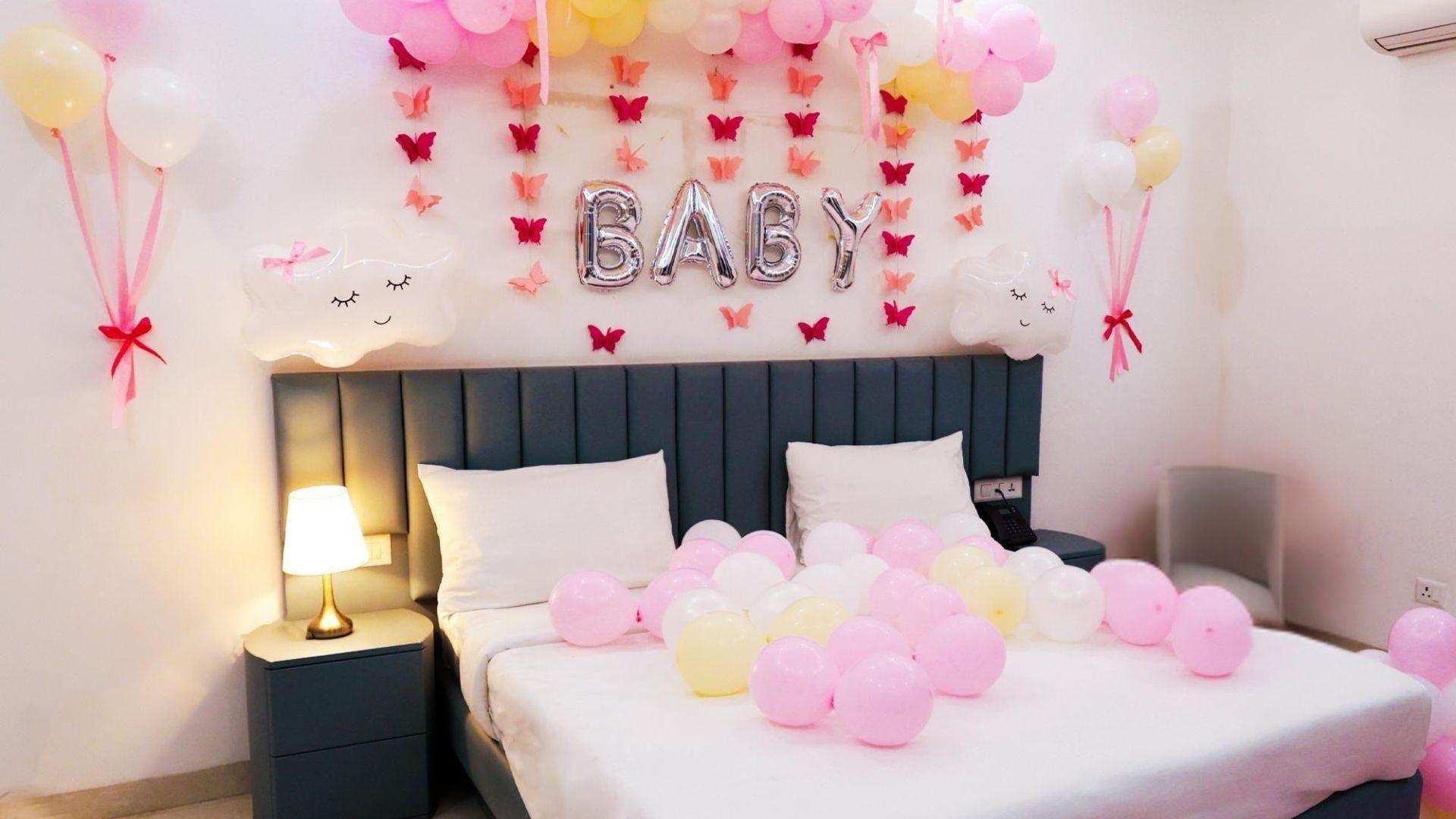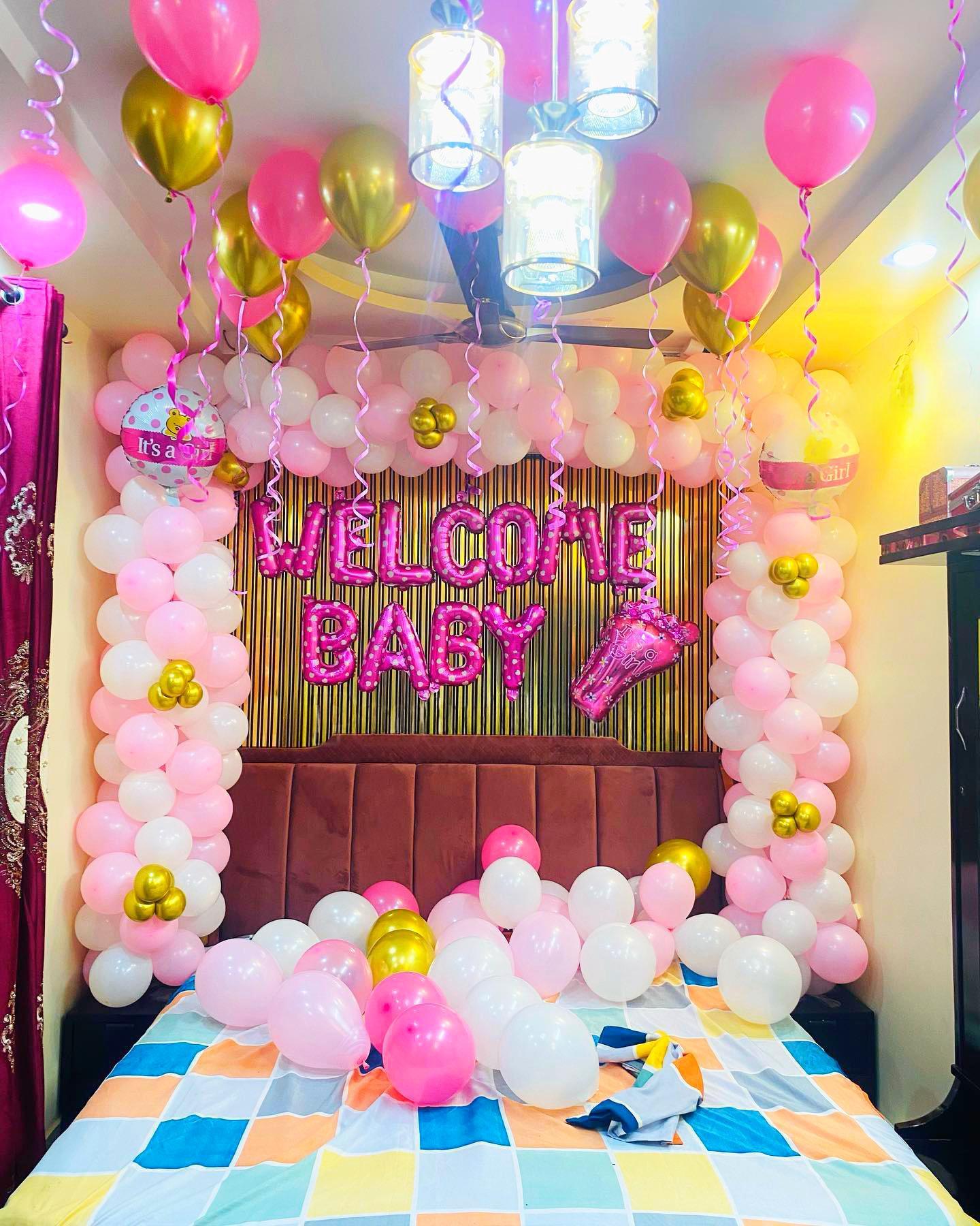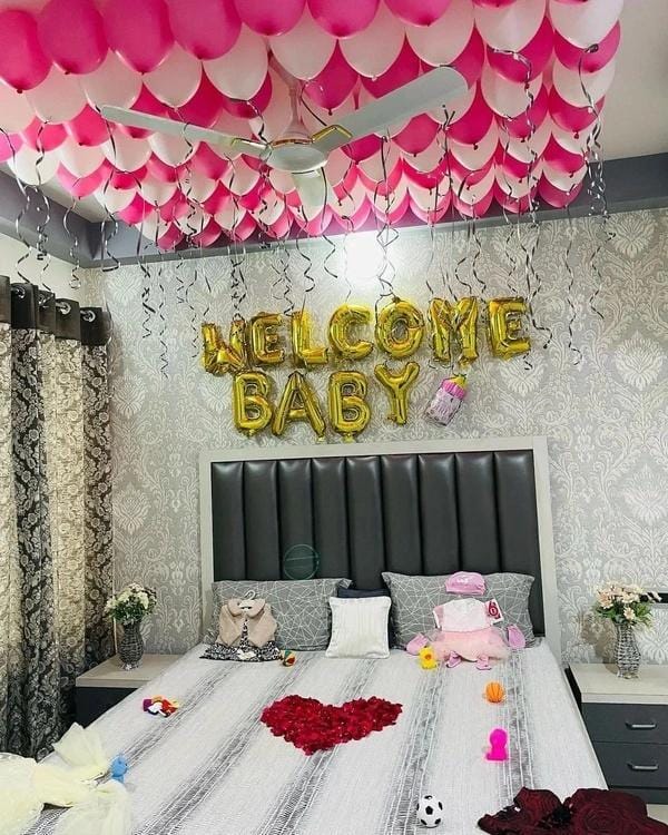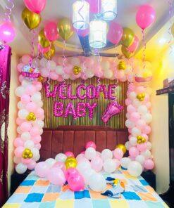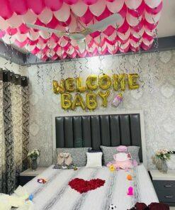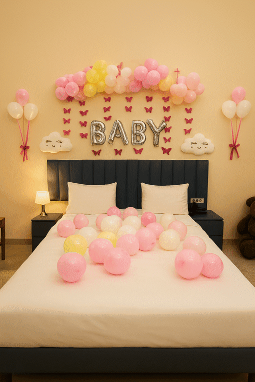 Enter a room brimming with tenderness and joy, thoughtfully designed by Letscelebrate to welcome your new baby in the sweetest possible manner. Our “Welcome Baby” room decor transforms any space into a whimsical haven with soft pastel balloons, dreamy white cloud formations, and stylish “BABY” foil letters. Pink bows and delicate butterfly strings mingle with airy, free-floating balloons, creating an enchanting ambiance of pure wonder. Perfect for a surprise for a new mom or a heartwarming family gathering, Letscelebrate ensures this decor adds warmth, charm, and unforgettable memories to your truly special moment!