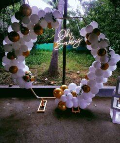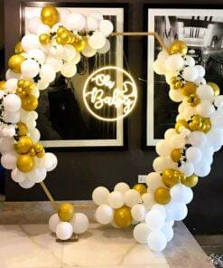✅ A beautiful arch of one hundred fifty balloons of colors one hundred thirty white latex and twenty golden chrome balloons decorated with artificial flowers.